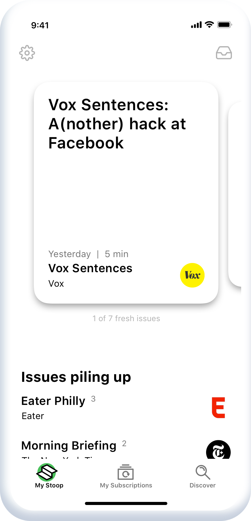 Stoop helps you discover, subscribe, and consume great content all in one place. Get those newsletters out of your inbox and onto your Stoop.